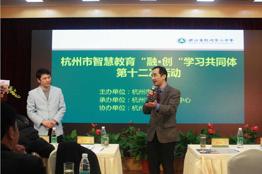 2016年元月14日,由杭州市教育局主办的智慧教育“融•创”学习共同体活动在杭州二中举行。“融•创”学习共同体已经成功举办了11次活动。这次教育局把“第12次活动”安排在杭州二中,是对二中智慧教育工作的肯定。