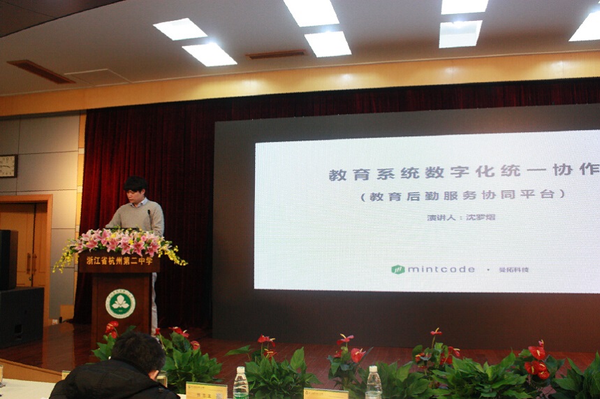 然后是教育信息化商品介绍。青岛通软CEO杨云鹏讲了“智慧校园一体化系统建设”;上海晓信科技法人代表卜江讲了“新媒体环境下的家校‘管理’和教学创新”;Mintcode(曼拓科技)CEO沈罗熠讲了“浅谈教育系统数字化统一协作”;阿里巴巴钉钉联合创始人孔明讲了“钉钉助力教育信息化,让我们的学校一步进入云和移动办公的时代”。